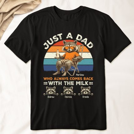 Just A Dad Who Always Comes Back With The Milk Racoon Version – PersonalizedOne Size Shirt