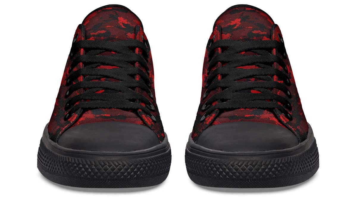 Capture attention with every step in the Red Camo Pattern White Low-Top Sneakers. These high-impact shoes pair a striking red camouflage print with a bright white base, delivering a fresh and energetic aesthetic. Perfect for trendsetters who want a statement look, these low-tops offer a cushioned interior and a sturdy outsole for all-day performance. From street festivals to casual hangouts, these red camo sneakers provide the perfect balance of eye-catching fashion and reliable functionality.